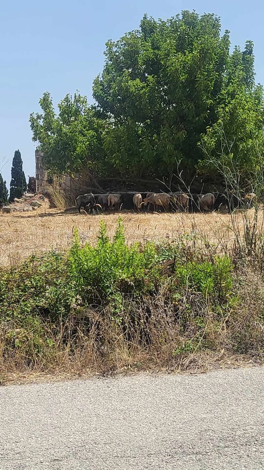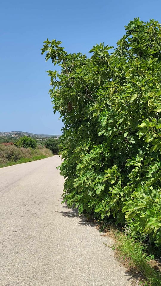 This is the corner where you turn off the main road to the house. There is a lovely cafe, Cafe Livadi, inside that is walking distance from the house, perfect for your morning coffee and pastry and in the evenings for cocktails. Tell George hello!