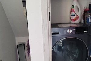 Full size washing machine in the common area shared with downstairs apartment