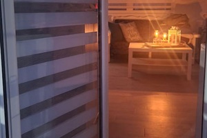 Evening view of the living room from the balcony